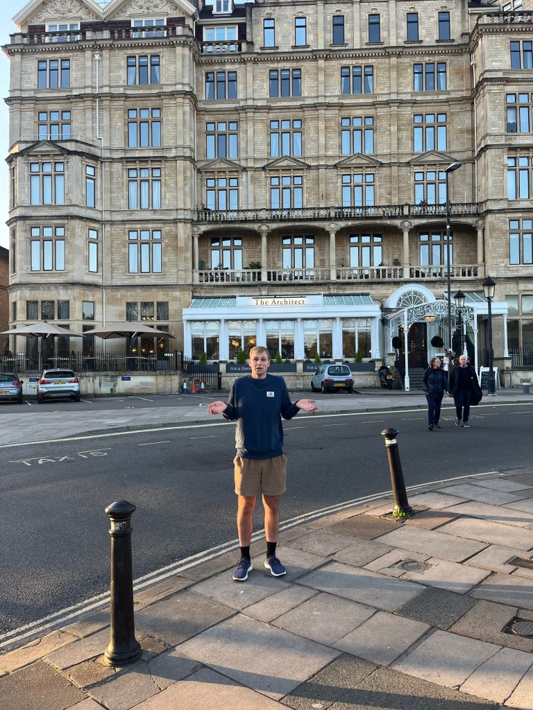 As the bus ride commenced, a voice from behind offered me a pastry, which I politely declined, with stranger danger ringing in my ears and the stupid thought of a poisoned pastry crossing my mind. However, as time passed, the same voice piped up again, this time inquiring about our origins upon noticing our brownish legs starkly contrasting with England’s typically pale complexion. This sparked a lively conversation ranging from his former semi-pro football career to astute observations about us, which were surprisingly accurate and very thought provoking. This conversation lasted the remainder of the journey making time fly as we traded information back and forth as well as some good old wisdom passed forward from Anthony (our wise new friend)