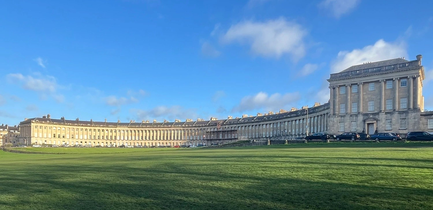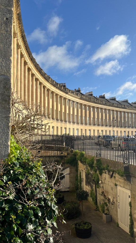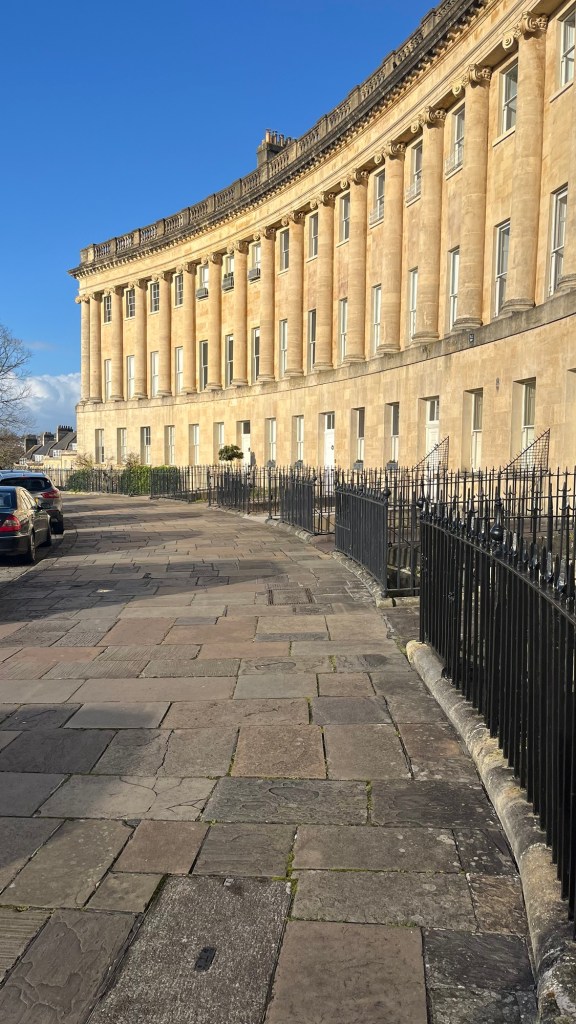 With the good old freight train snorer in the bedroom, sleep became a distant dream. As sunlight filtered into our room, we seized the opportunity to explore Bath. Our first stop: The Royal Crescent, renowned for its majestic architecture in the form of a crescent. Bathed in the soft morning sunlight, this iconic building offered some good photos especially since it was early and no one was around (see below).