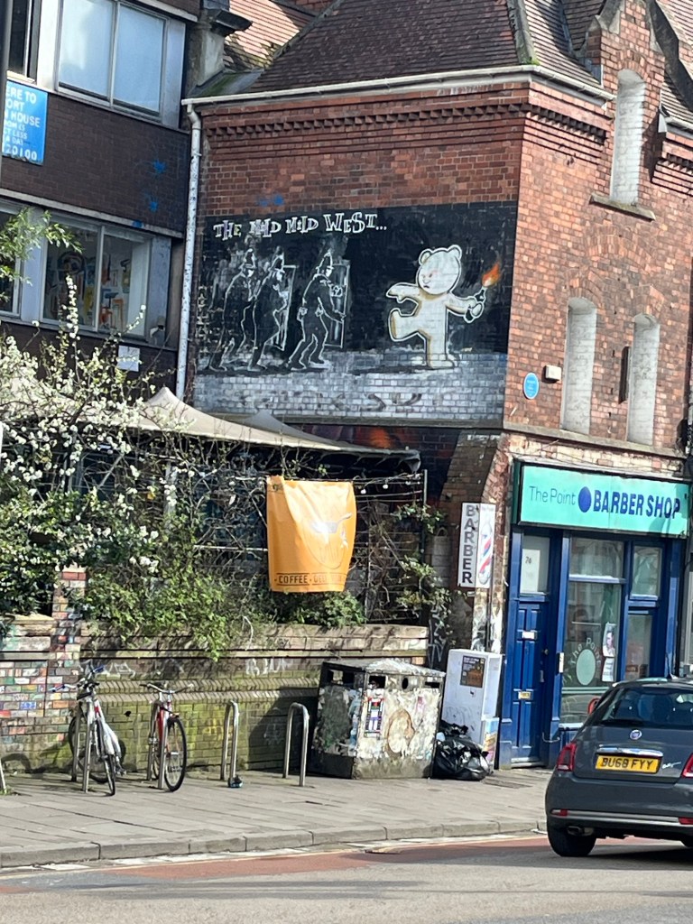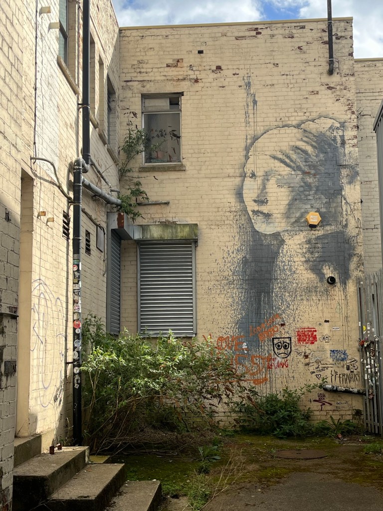 Despite our check-in not being until later, the hotel graciously allowed us to store our main luggage, granting us the chance to explore a bit beforehand. And what did we do? We made our way to the nearest Banksy piece. In a city teeming with graffiti and wannabe Banksys, locating the real deal can be a tad tricky. Nevertheless, we stumbled upon our first Banksy: The Mild Mild West. With photos in hand, we ventured to the next one, a bit further down the road. This led us to what seemed like a sketchy area, strewn with broken glass and every inch plastered with graffiti. However, this Banksy had been defaced and covered over with another work of what I would call rubbish. Without wanting to spend much longer in this area we boosted back as our check in time was ready.