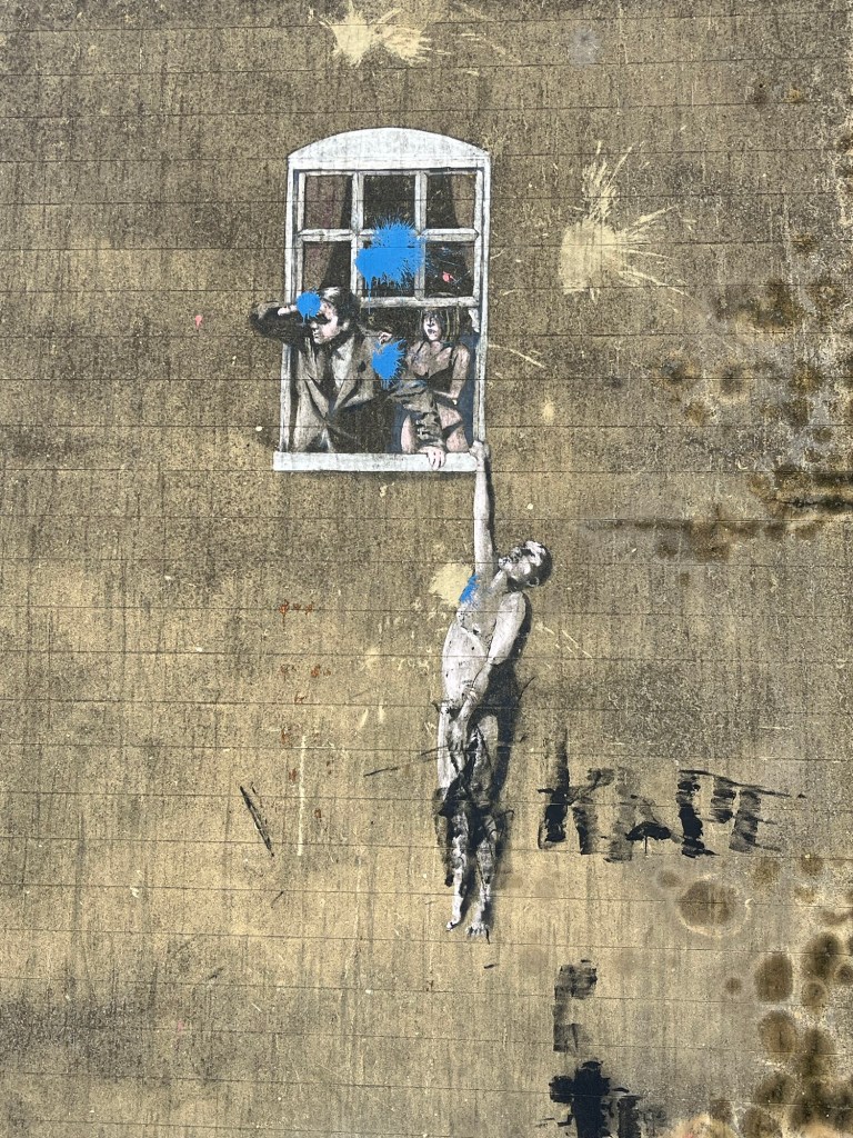 After staring at those distractions for sometime, nearby was the first Banksy of the day, ‘Well Hung Lover’. Not much more to say on this for it speaks for itself but for us it was less about the Banksy works of art and more about the adventure across town.