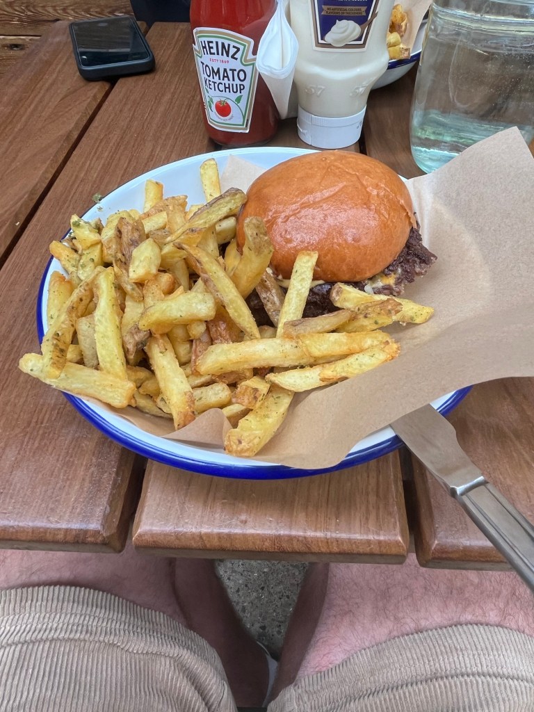 After doing some washing (thank you, Will) and hanging it out to dry in the thing called sun which had appeared that day, we decided to venture out. Since it was now lunchtime, food was on the mind as we headed back to the indoor market we had visited previously in Brixton. We ended up at the same burger place because let’s be honest, if it’s a good place and you’re feeling it, why change?