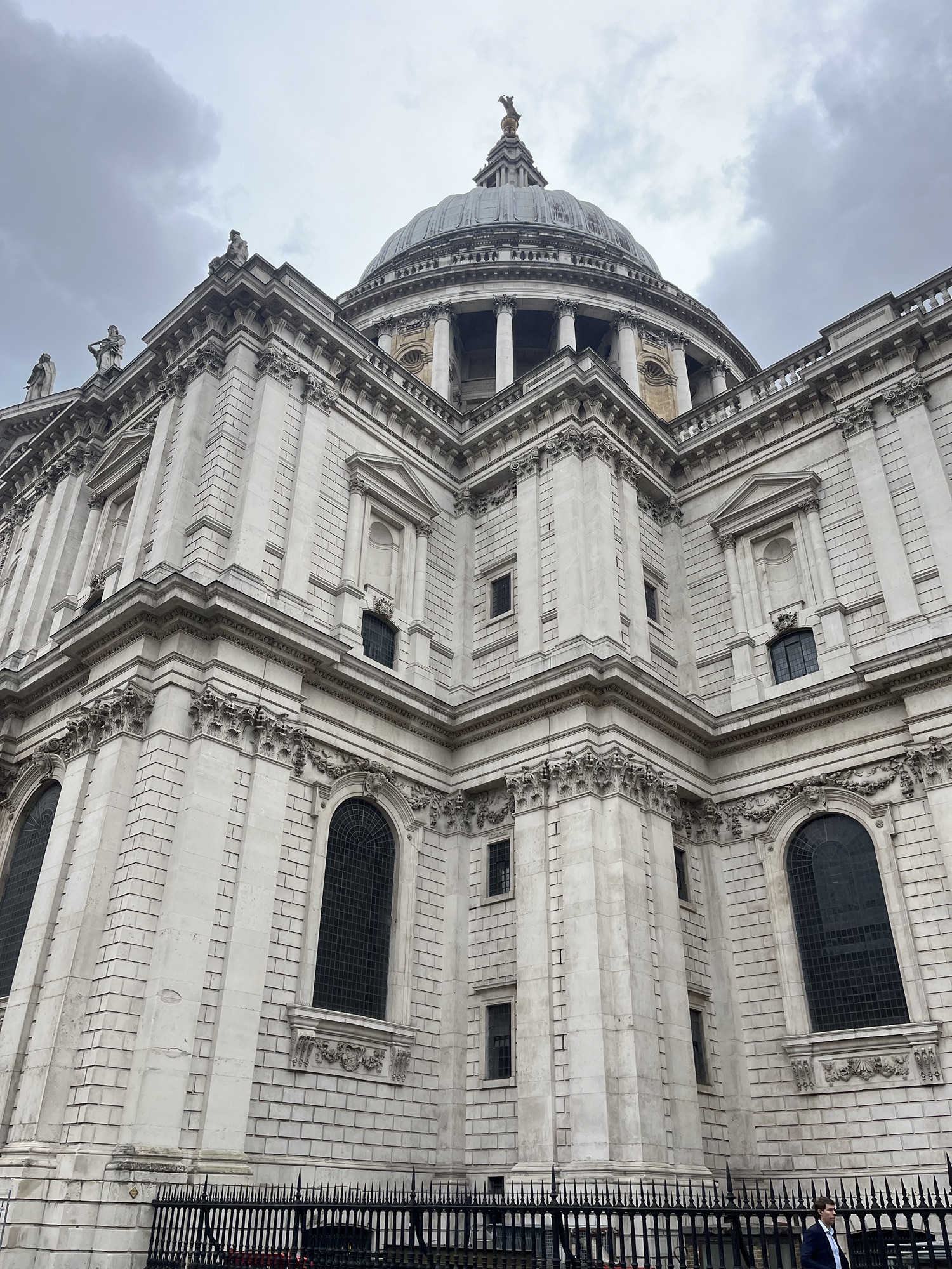 We decided to utilise the rest of our afternoon by visiting the places we missed last time we were in London. Jumping on the underground like a couple of pros, first up was St. Paul’s Cathedral, and I must say, wow. The outside of this Cathedral certainly says “hi, hello, I am here to stay, and you will look at me.” It was a masterpiece on the outside; the detail and sheer size of the Cathedral were truly breathtaking, from giant doors that made me feel like a hobbit to massive columns supporting the whole structure. (St Paul’s Cathedral below)