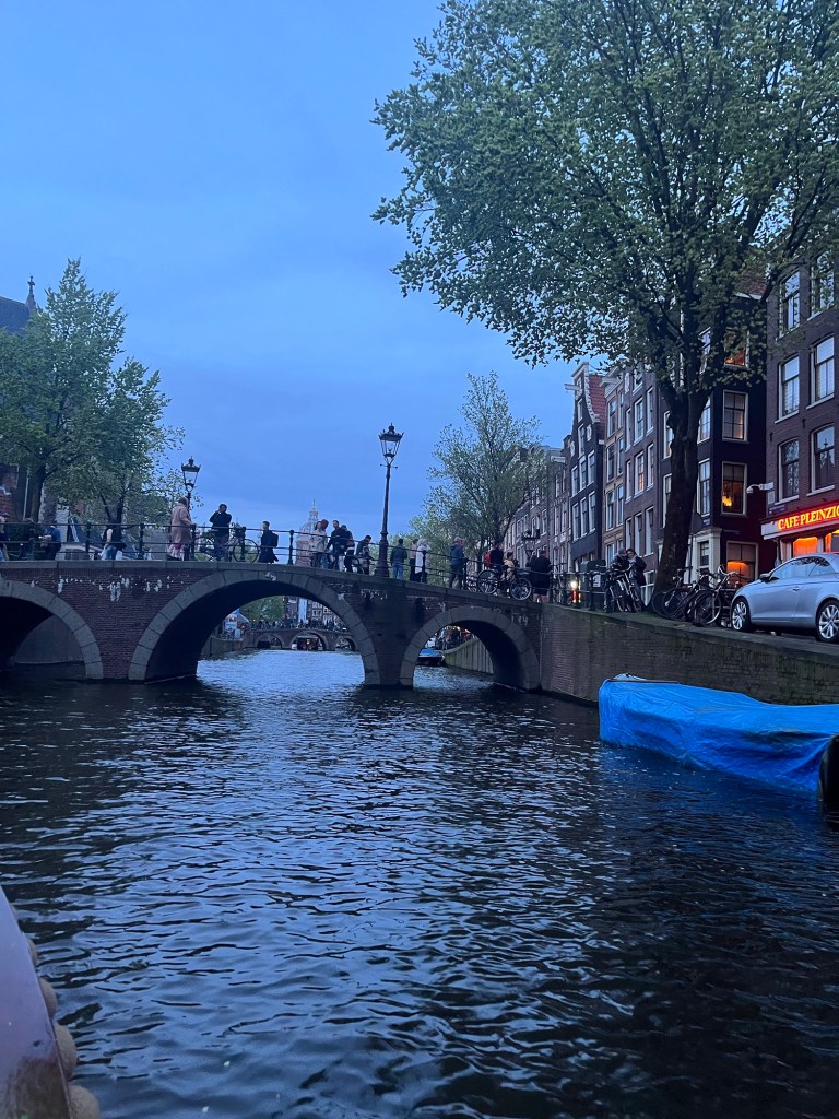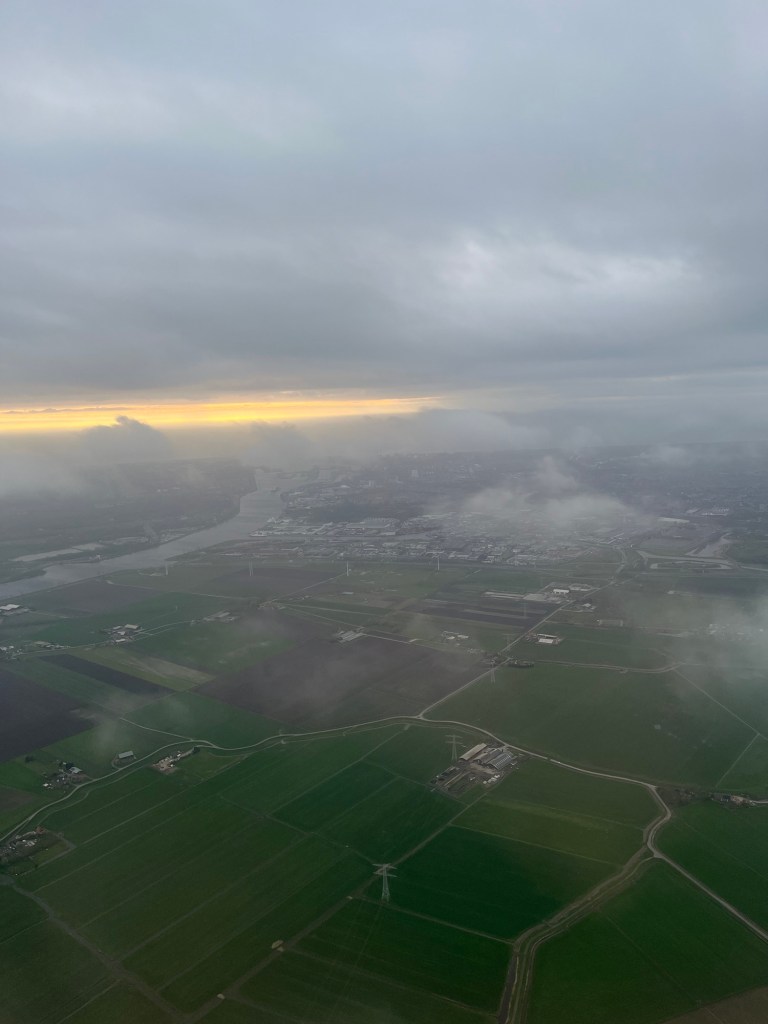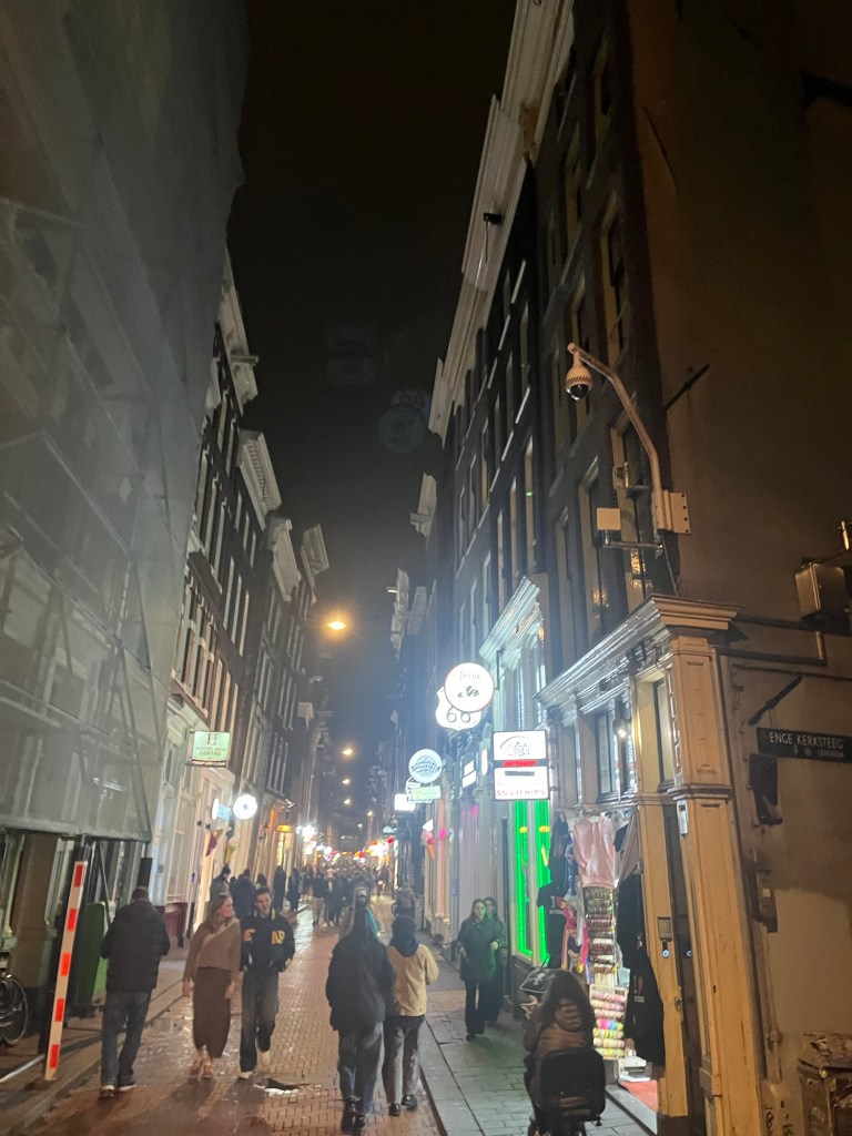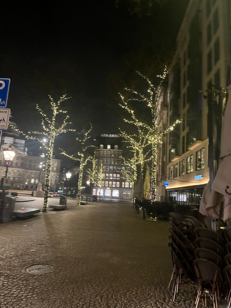 After sitting in the front row of seats on the plane (new experience unlocked) we arrived in Amsterdam as darkness closed in.
