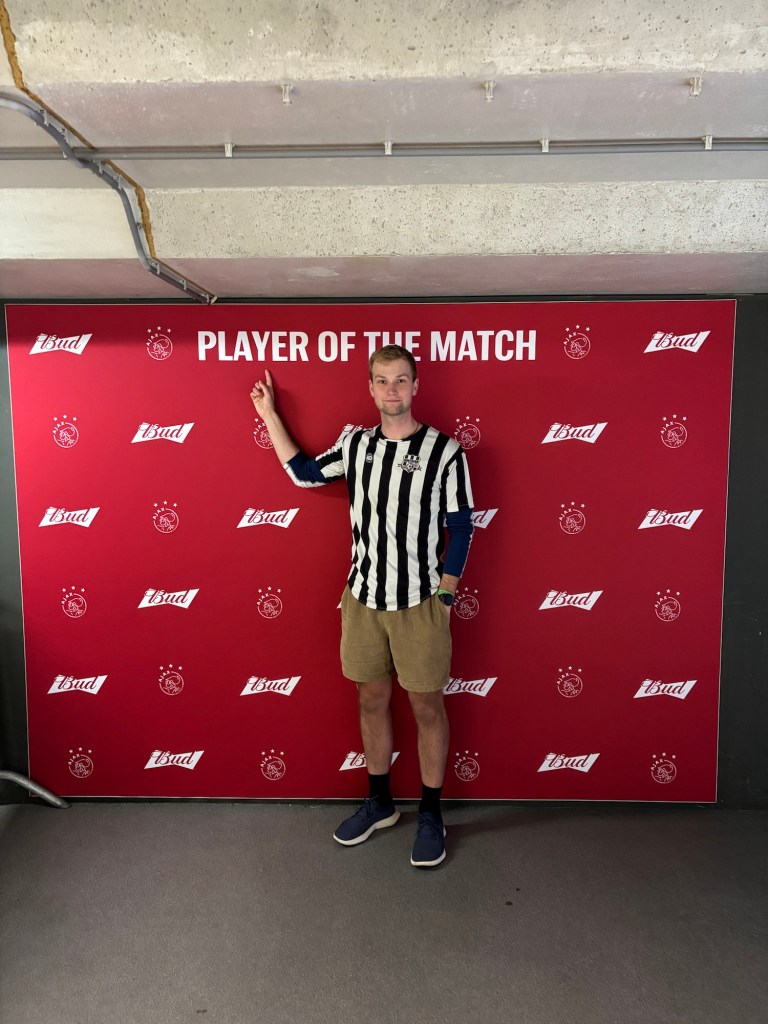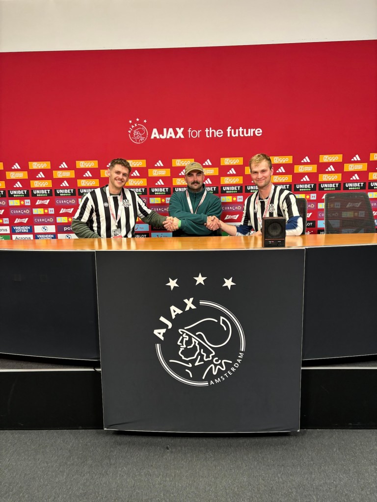 This stadium tour was self-guided, which was nice in a way as we could spend time in the areas we wanted. These included the Tunnel where the players walked out, the pitch and dugout, the player of the match area, the players’ locker room, and of course, it wouldn’t be complete without the press conference room. The press conference room held a certain significance as myself and Matt signed a deal wearing Northern shirts for Will, our “manager”, so the truth is who knows what that actually means considering we were in Ajax stadium. The outcome, however, was a great stadium tour with lots of memories made. Please lay your eyes on the slideshow of images below featuring the important handshakes.