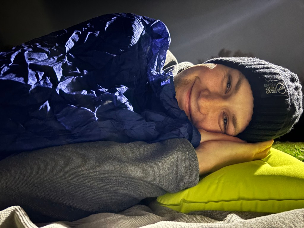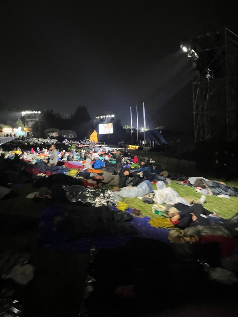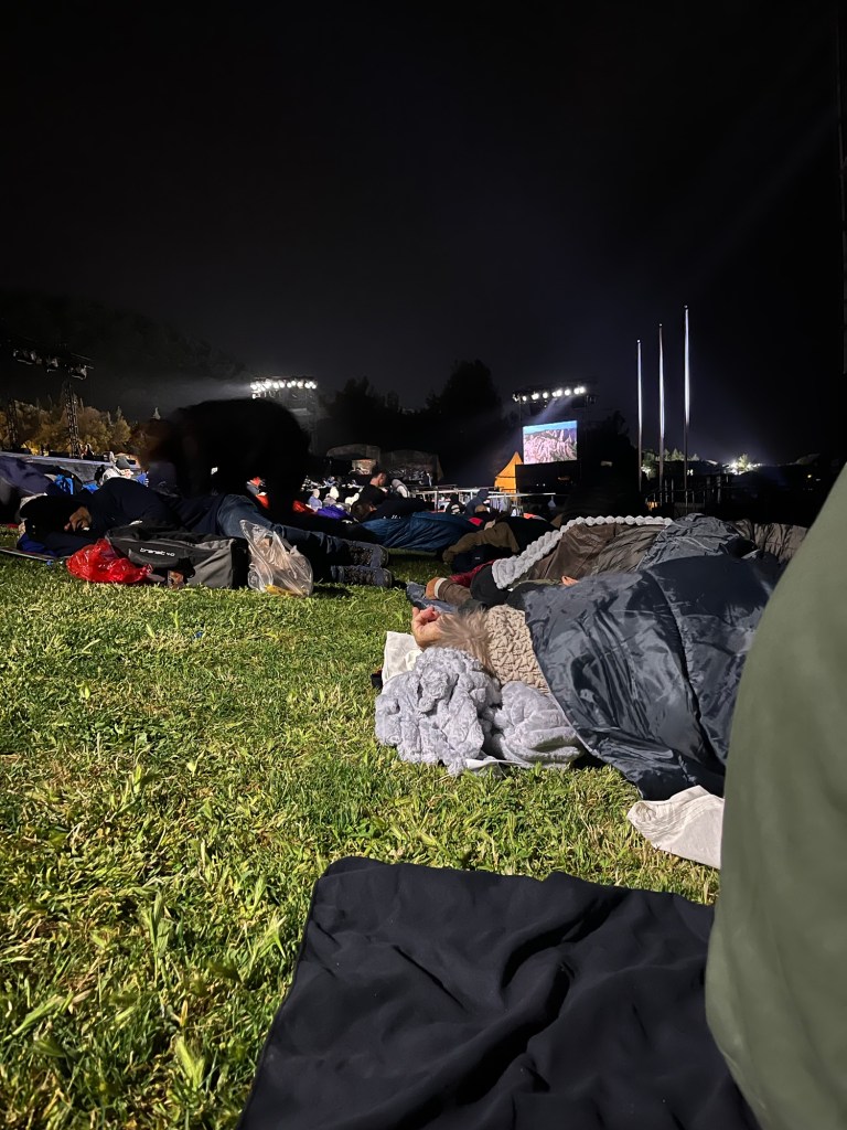 Finding a spot to settle down proved challenging, but I eventually located a nice area and laid a towel on the grass. I bundled myself up in extra warm clothes, hoping to snatch an hour or two of sleep.