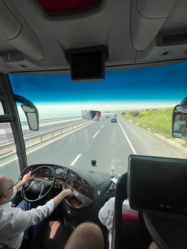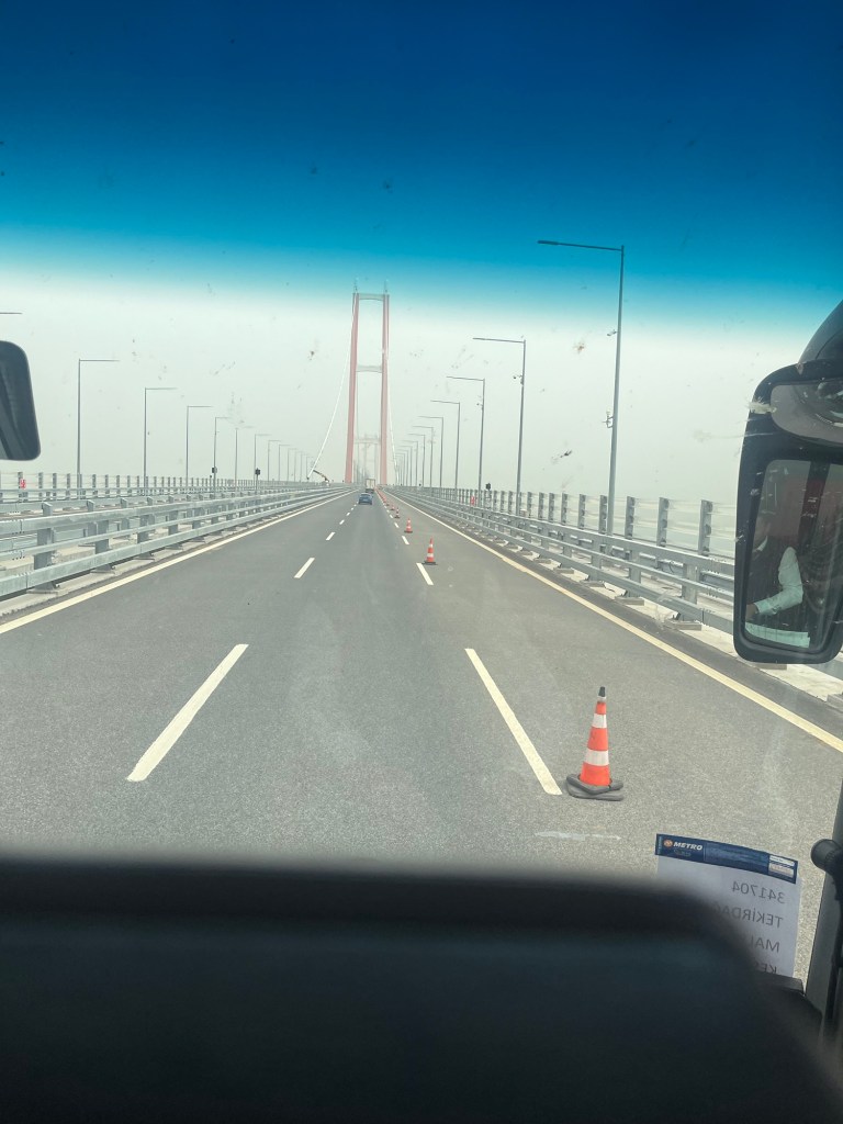 During our journey out of Istanbul, the bus was waved into a checkpoint by some police with big guns—and I mean the shooting kind. One of the officers boarded and checked passports. One passenger was taken off the bus for questioning and, unfortunately (or maybe fortunately, who knows?), he wasn’t allowed back on. I must also note that the horn gets fully utilised on the roads of Turkey, going off every couple of seconds! Rumour has it, every time you clap your hands, six horns sound in Turkey.