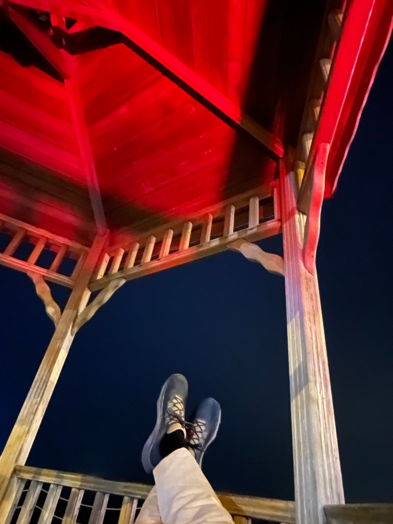 With the time now around 7:30 pm, we had several hours to pass before catching the 1 am taxi. To fill this time, we settled along the beachfront in small roofed bench areas, perfect for lounging and watching a show or two, or maybe even five. It was during this time that I realised I had once again forgotten to pack my sunscreen in my big bag. Determined not to forget it again, I decided to stash it in the rafters where we were sitting, hoping to retrieve it the next day.