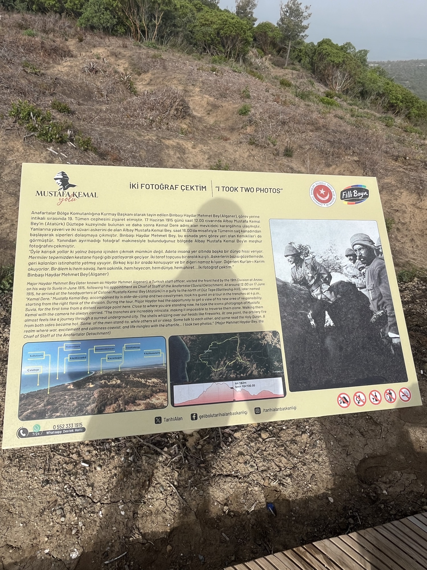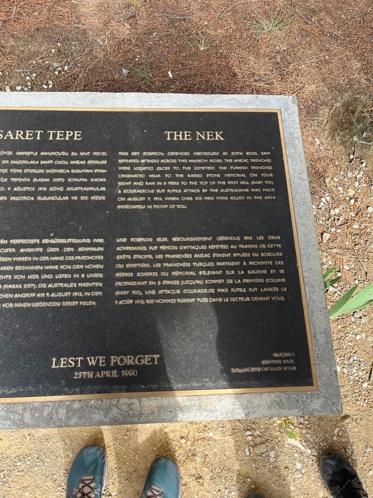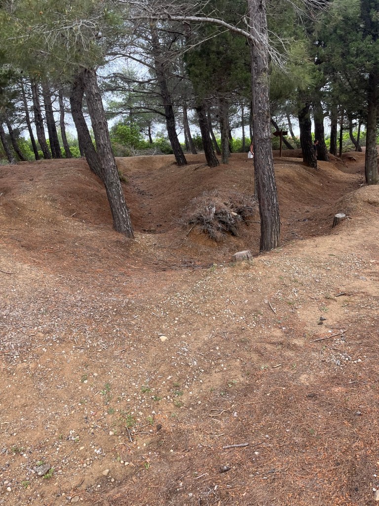Along this journey, you pass by old sunken trenches where soldiers would have spent their final moments, and battlefields the size of a tennis court where 300 people fell to machine gun fire. Another poignant story recounts soldiers shooting down onto Turkish forces, only to be decimated themselves by a sudden machine gun attack from the right. Despite heavy casualties, two soldiers survived atop the hill, one soldier turned to say how lucky they were when the machine gun opened up again tearing through his head but stopping just before hitting the remaining soldier (the one who lived to tell this story). Experiencing these narratives firsthand while passing from Lone Pine to Chunuk Bair made every step worthwhile. Being in the very place where these events unfolded, and seeing remnants of the battle, was incredibly moving. I cannot recommend enough the experience of visiting these sites and immersing oneself in this history. Below are images from the journey to the New Zealand Service, including views of the old trenches.