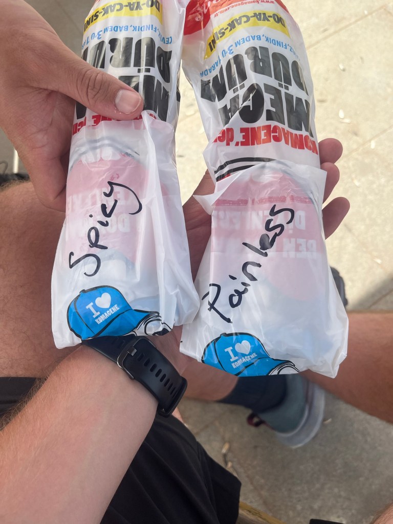 Afterwards, we headed out to get Durum for lunch. Matt opted for the spicy option, while I chose the plain one, sticking to my “boring white guy” preference. The Durum themselves were cheap as chips (cheap as Durum), so we each got two, saving one for dinner later. The ladies making them had a bit of humour, giggling to themselves during the process, as captured in the image below.