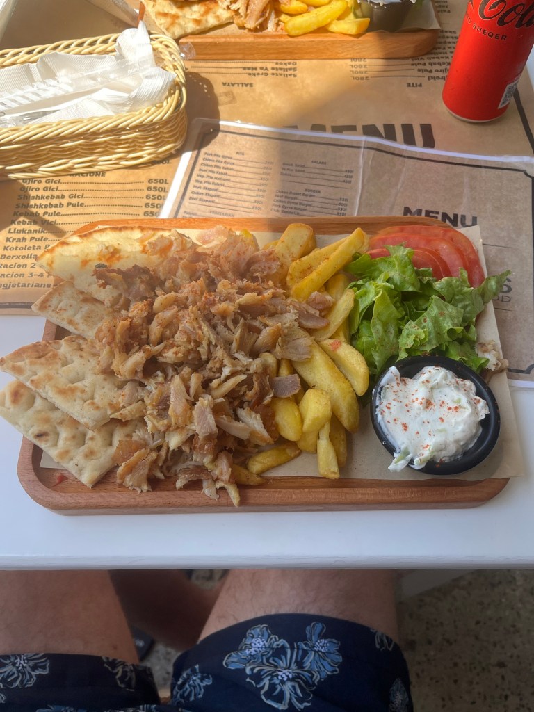 Back at our original spot, we jumped into the water for a refreshing swim, especially with the air temperatures hitting a scorching 30 degrees. After feeling somewhat revitalised, it was time to hunt down some lunch. We stumbled upon a Greek restaurant that turned out to be a huge success. It was reasonably priced, and let me tell you—the food was absolutely delicious! Enjoying a tasty meal in the hot sun, paired with a Coca-Cola (not sponsored, unfortunately), made for a perfect afternoon.