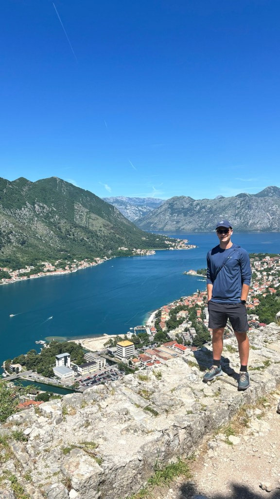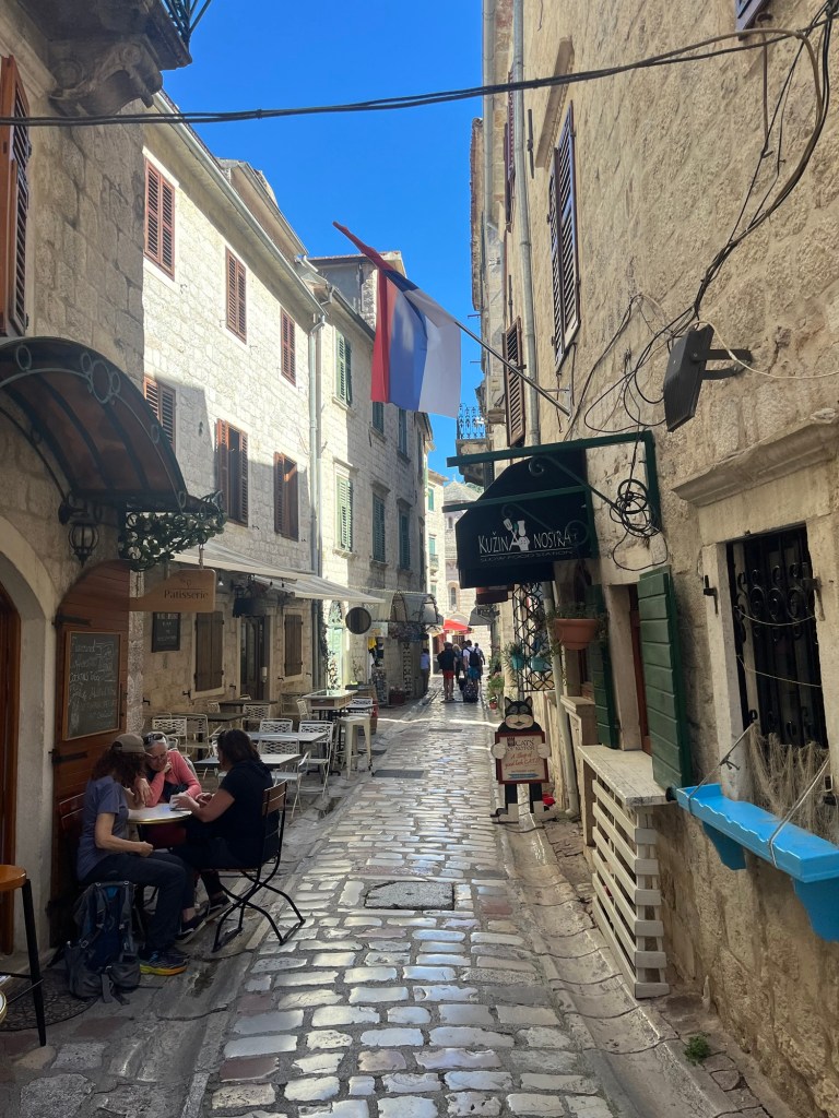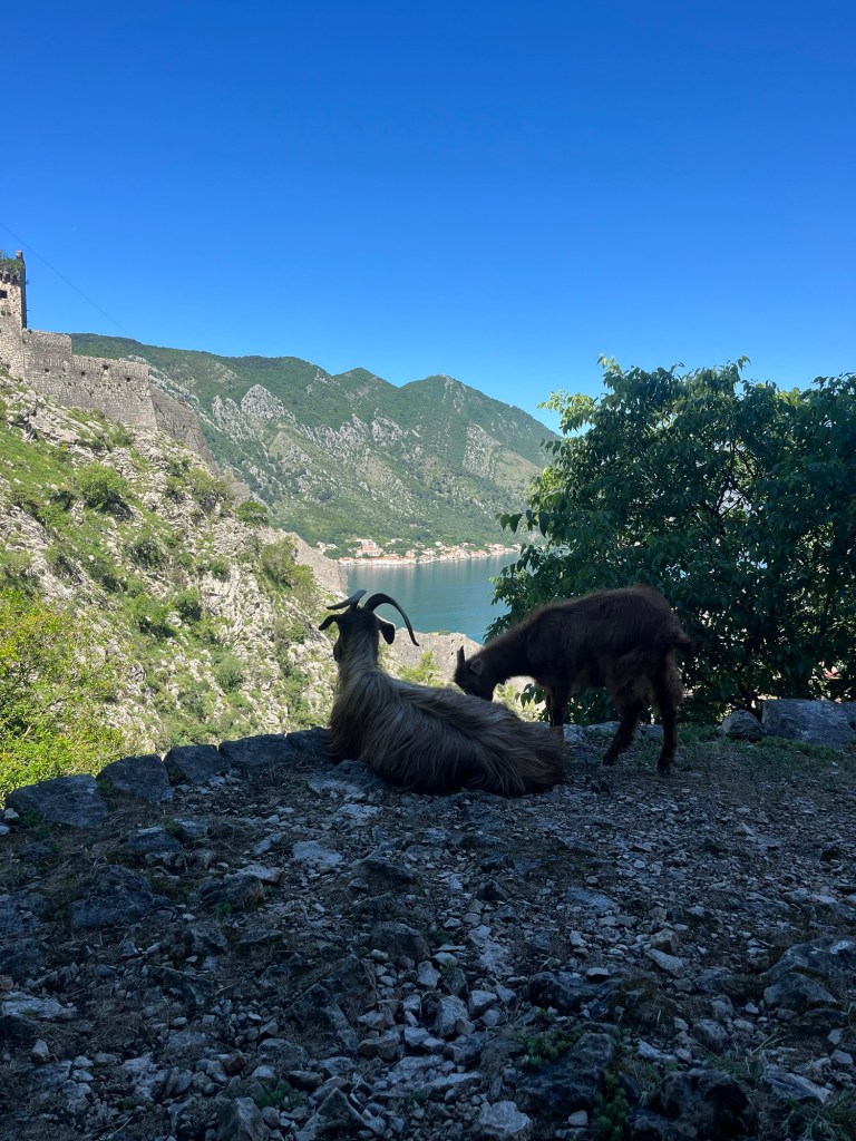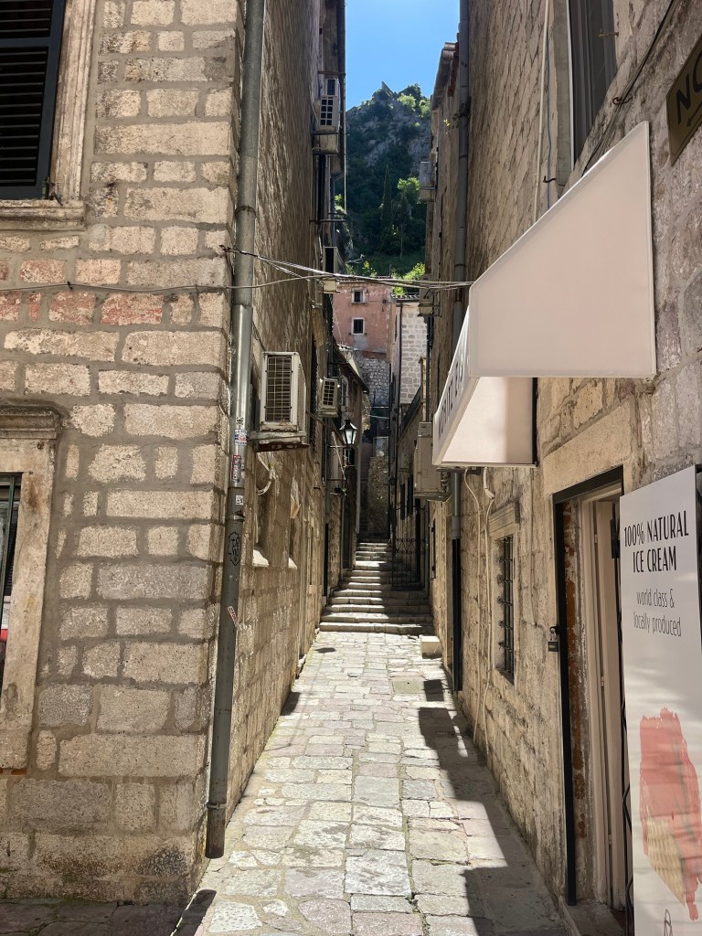 Today was the day for a trip to Kotor! After hopping on a bus around 9 a.m., it was only about 30 minutes before my feet were touching the pavement of Kotor, leading me straight toward the famous old town. I was greeted by the iconic town walls and the resident cats, of course. It felt like the perfect plan to tackle Kotor Fortress, perched on a hill, before the sun cranked up the heat (not that it helped much!).