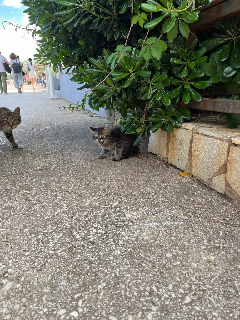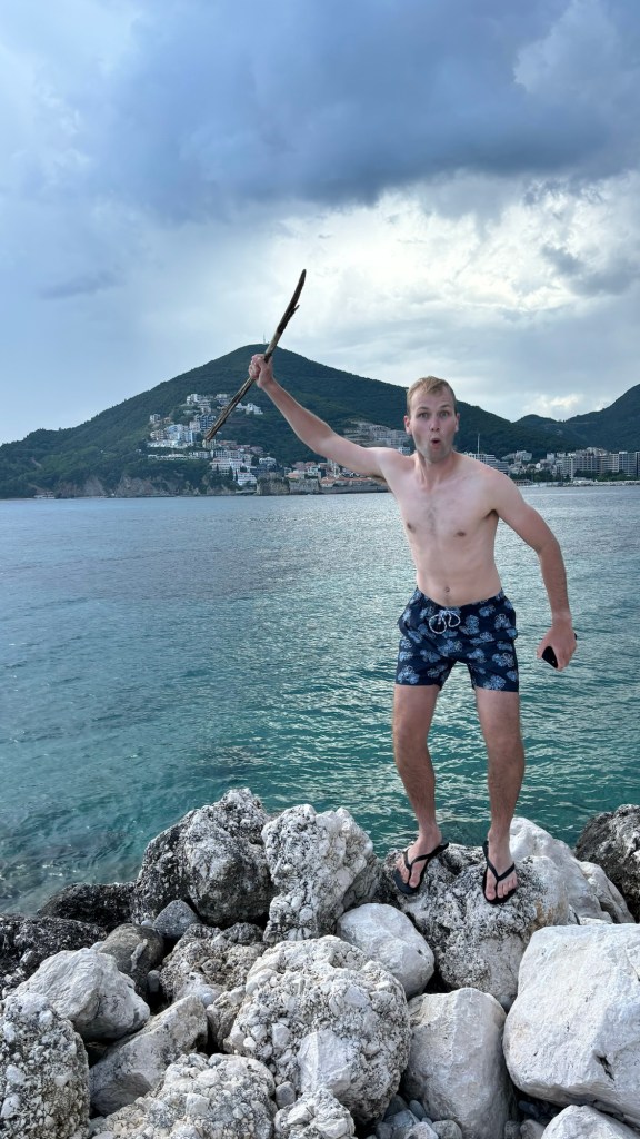 The weather was starting to take a slight turn, with a breeze picking up just as we decided to go for a cheeky kayak. On our walk to the kayak rental place, we were greeted by a bunch of cats and kittens that seemed to be everywhere in Budva. Seriously, if you love felines, this place is a paradise! I could’ve spent the whole day just petting them. But alas, the call of the open water was too strong to ignore, so we pressed on, ready for the next adventure on the waves.