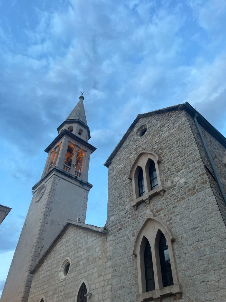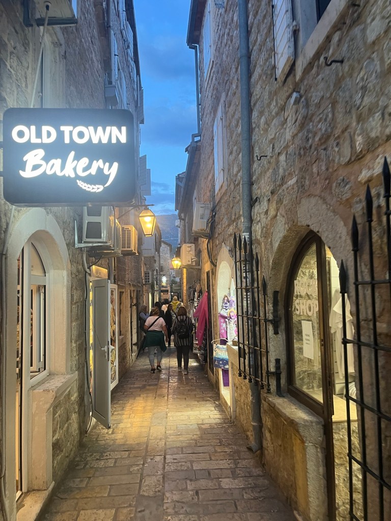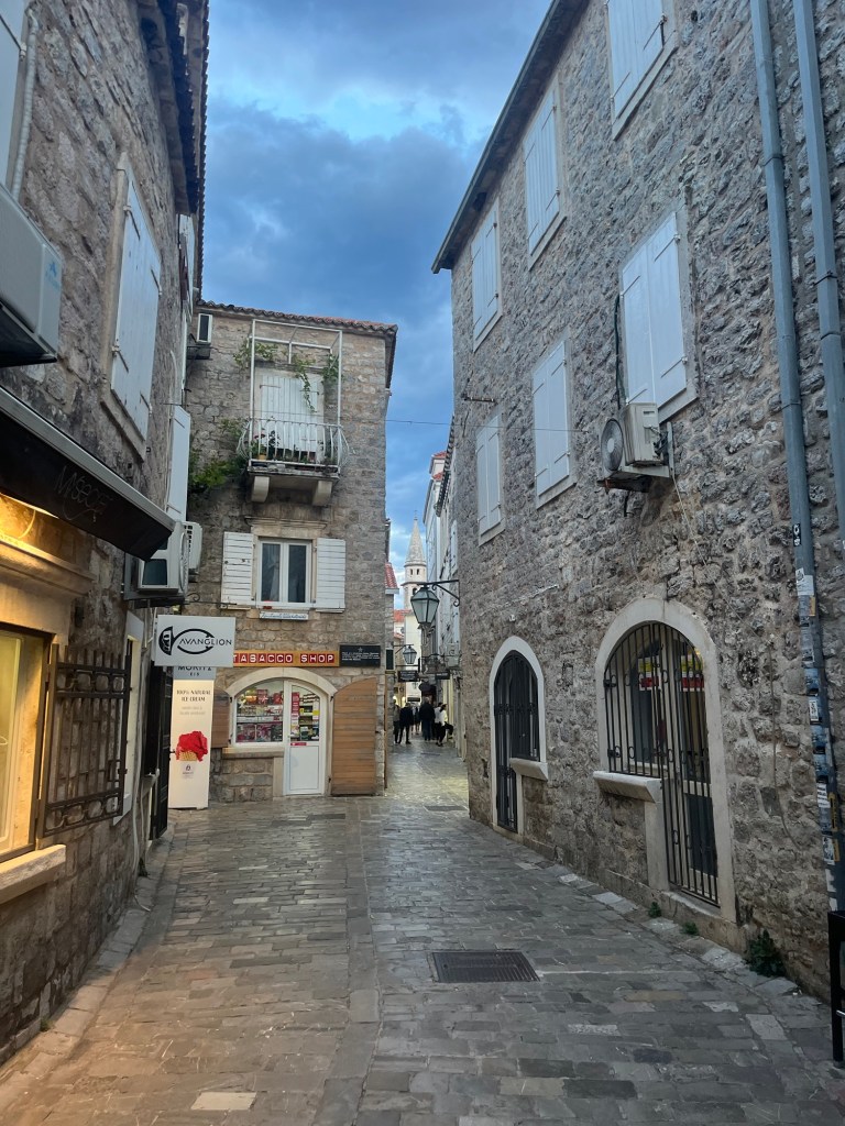 When facing the waterfront and heading right, you eventually stumble upon Old Town, a captivating area rich in history and stunning architecture that exudes a timeless charm. True to its name, it’s the heart of Budva’s ancient past, a place where cobblestone streets and historical buildings take you back in time. However, this time around, our focus was on getting to the more picturesque beaches, so we ventured around the back of Old Town and continued on our way.