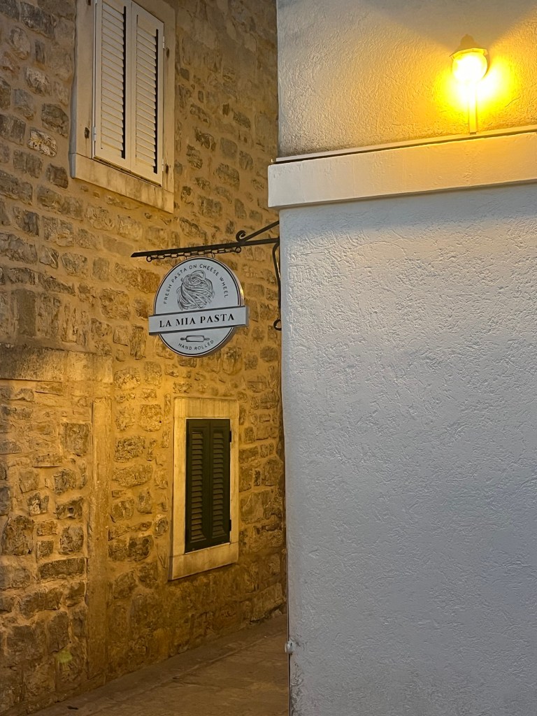 After a refreshing dip in the beautiful Budva waters, it was shower time and then off into the night. And guess what happened next? The pasta place appeared out of nowhere and practically trapped me inside, forcing me to devour yet another delicious dish of pasta—or is it pasti? Who knows, but I wasn’t complaining!