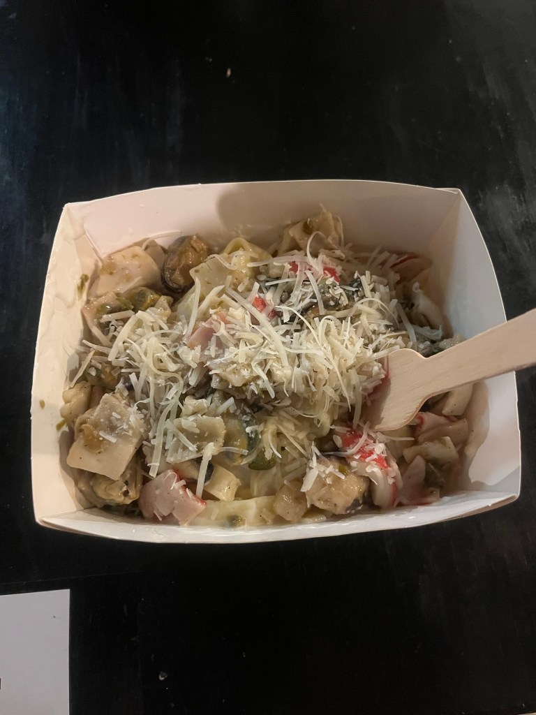Picture this: handmade, rolled pasta being tossed in a massive cheese wheel. I can already feel my mouth watering just thinking about it! Naturally, I went for the seafood pasta—because, well, I’m basically in the sea. Spoiler alert: it did not disappoint! The quality of this pasta? Honestly, it’s the best I’ve ever tasted, and I’m not just saying that to be polite. Everything was perfectly balanced, from the seafood to the cheese to the pasta itself.