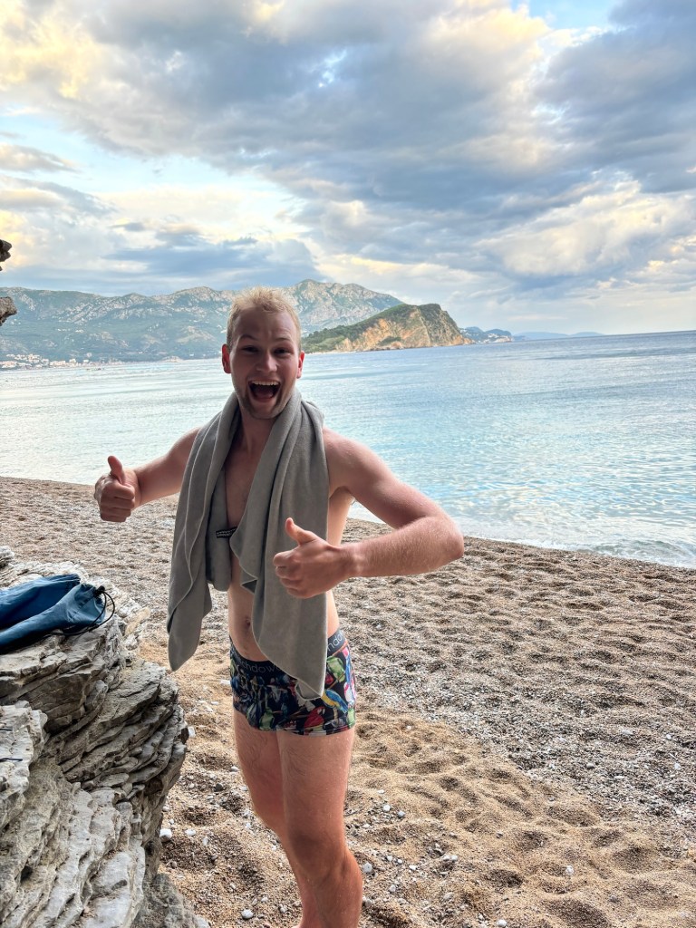 The bus back to Budva wasn’t the end of the day… oh no! It was back to Mogren Beach once more for another round of swimming because, why not? I’m all about making the most of those sunny days (and yes, still slathered in sunscreen like a responsible beachgoer).