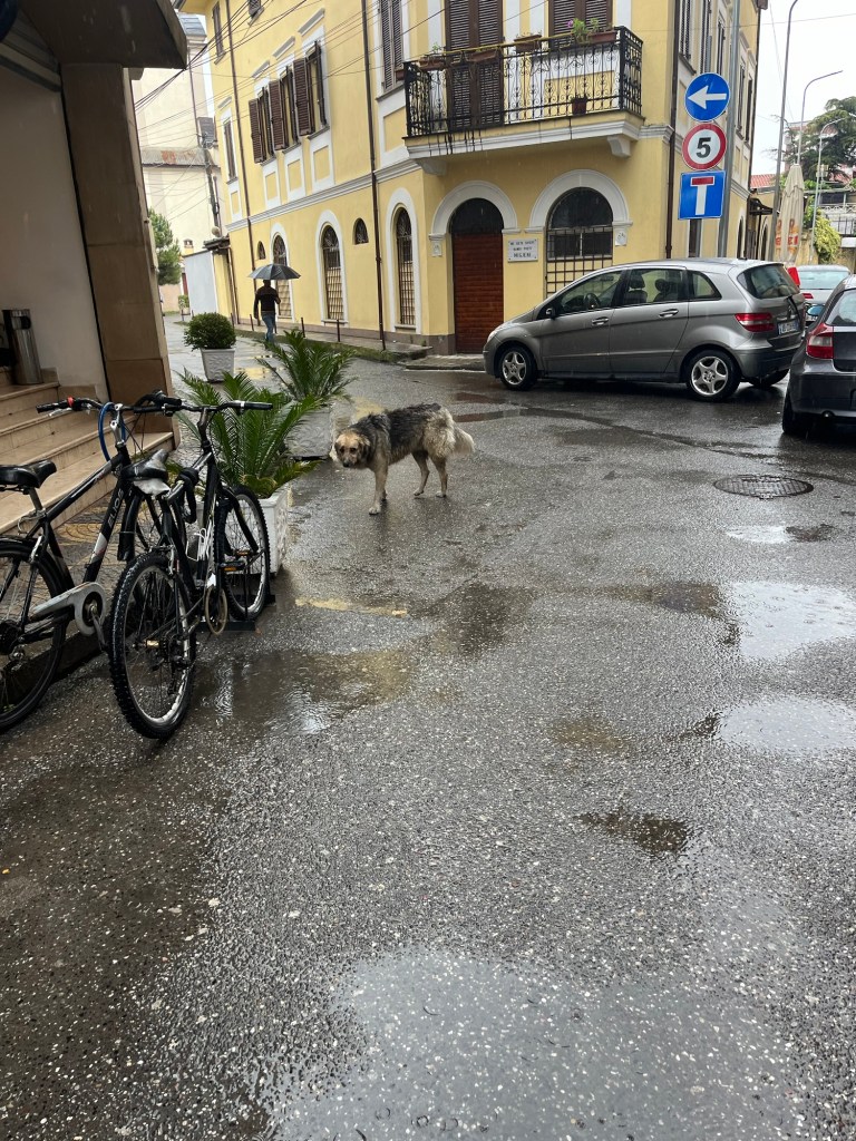 Luckily, during the walk, the rain began to ease, allowing for some enjoyment as we wandered the streets, soaking in the Albanian culture one last time. The mix of different buildings, the vibe of the locals, and—one of the highlights—a sad-looking dog, who, moments later, I spotted either acting as a security guard outside an ATM or, more likely, attempting to withdraw some funds itself.