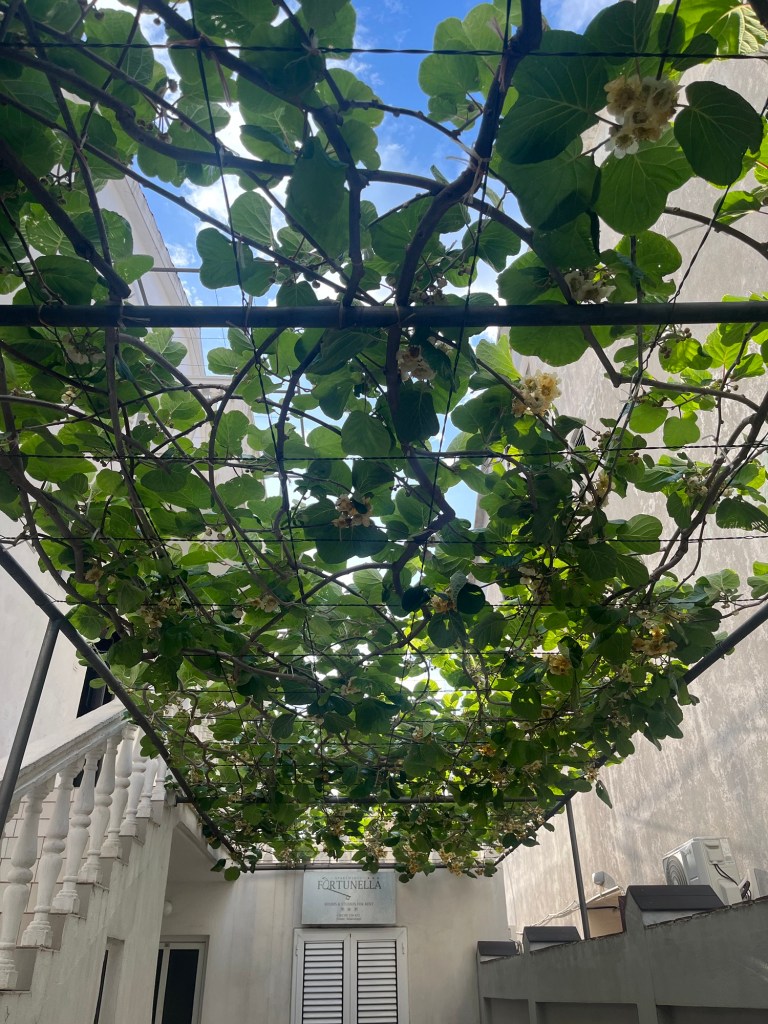 Fortunately, the apartment was just around the corner from the bus station, making the transition smooth. On the way, I passed what looked like a mini zoo, complete with rabbits, tortoises, and other small critters—definitely an unexpected sight! Despite it being 6pm, the sun was still beating down, but walking under vine-covered canopies brought some welcome shade and relief from the heat.